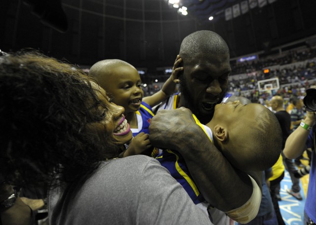 | Ivan Johnson celebrates with his family after the Texters' huge Game 7 win. (image by KC Cruz/GMANews) |